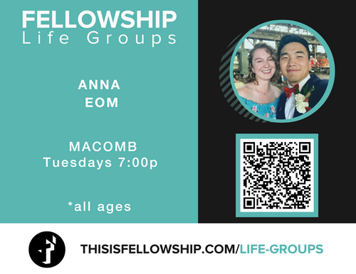 Anna Eom leads a Life Group in her home on Tuesdays at 7:00p. All ages are welcome.