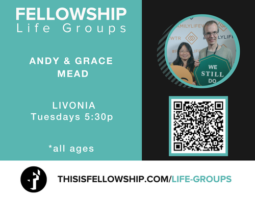 Andy & Grace Mead along with their two kids Ruth and Anthony lead a Life Group in their home on Tuesdays at 5:30p. All ages are welcome.