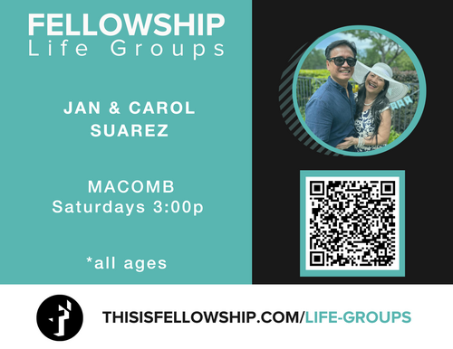Jan (pronounced John) and Carol Suarez lead a Life Group in their home on Saturdays at 3:00p. All ages are welcome.
